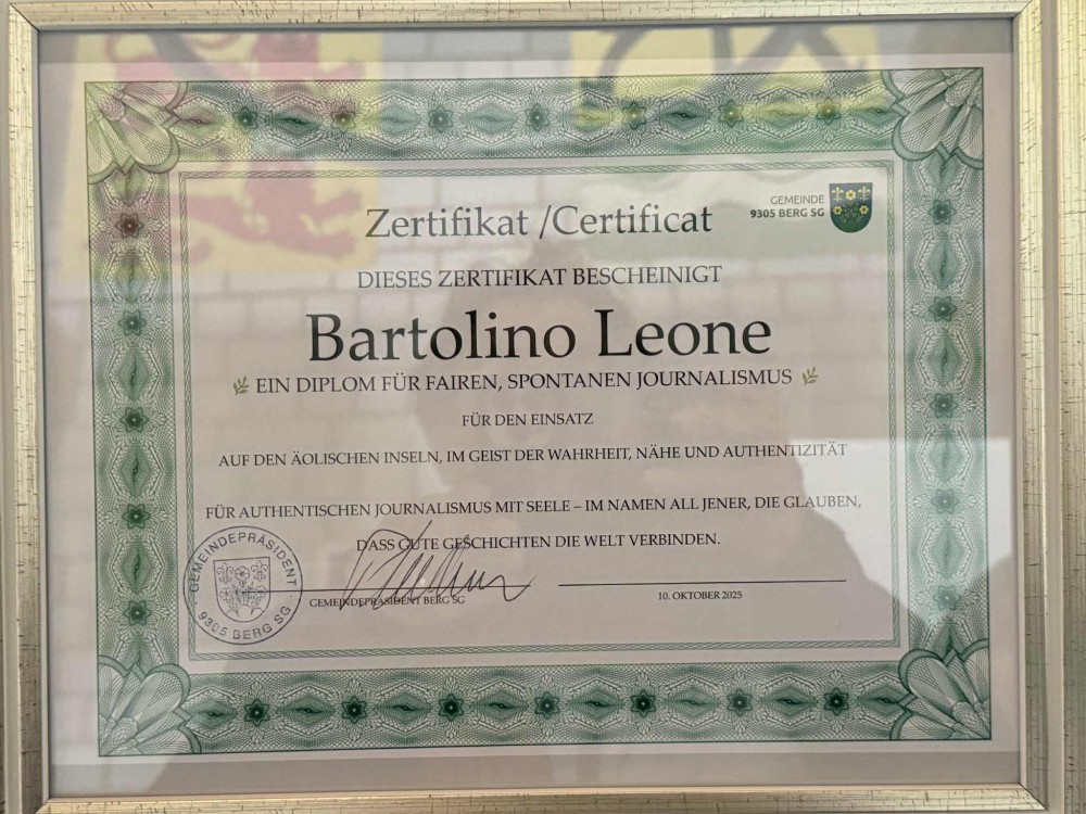(Schweiz) – Bürgermeister Peter Imthurn, nachdem er auf den Äolischen Inseln das Redaktionshaus des Direktors Bartolino Leone besucht, ein Interview gegeben und im Salon all die bereits erhaltenen Auszeichnungen gesehen hatte, rief aus: