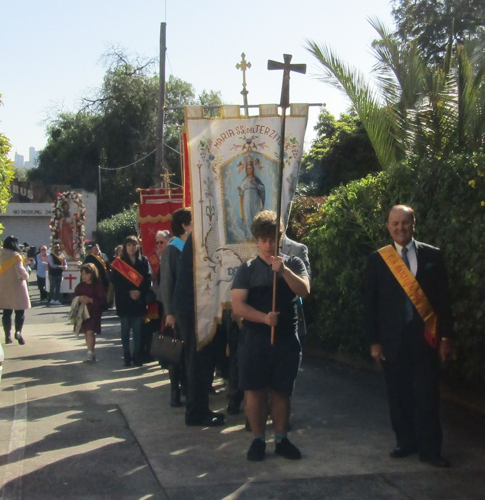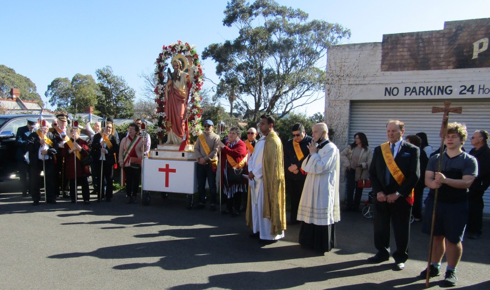 I festeggiamenti religiosi sono iniziati con la recita del santo rosario di padre Eldridge D’Sousa con lo stellario cantato dal maestro Raffaele Rossi. A conclusione del rosario si e' proseguito con la processione della statua con la partecipazione dei padri Eldridge D’Sousa e James Grant, del cerimoniere religioso Franco Sirianni, delle confraternite religiose, presenti con i loro stendardi, di San Bartolomeo, San Lorenzo, Santo Stefano, Madonna del Terzito di Hawthorn, Madonna delle Catene,Terz’ordine Francescano di Melbourne, il corpo bandistico delle Ferrovie dello Stato, e dei fedeli. A meta’ processione c’e’ stata una sosta e la banda ha eseguito alcuni brani religiosi e nuovamente si e’ recitato il santo rosario.