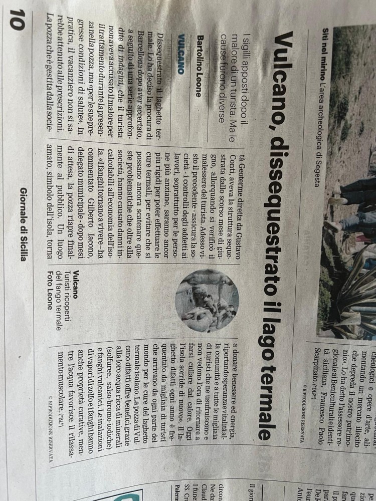 Il Giornale di Sicilia e le Eolie, Vulcano, dissequestrato il laghetto termale