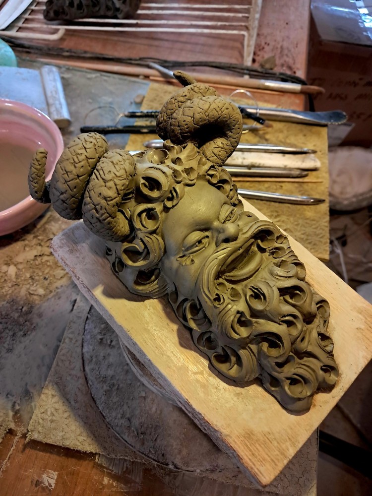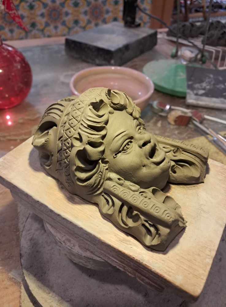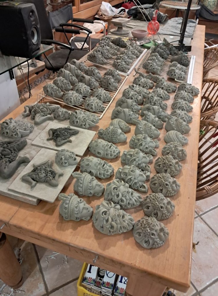Paolino e Giovanni decisero di infondere nuova vita a queste forme antiche. Ogni domenica, con il padre, si recavano al museo per studiare e schizzare gli originali. Con precisione ricreavano fedeli repliche tridimensionali a grandezza naturale delle antiche maschere e bassorilievi, riproducendo esattamente gli originali in terracotta. Il loro laboratorio divenne un luogo dove la storia incontrava l’artigianato contemporaneo, e ogni maschera raccontava una nuova, affascinante storia. Realizzarono anche maschere su commissione teatrale per una compagnia di Roma che metteva in scena a Lipari l’opera “La Donna di Samo“.