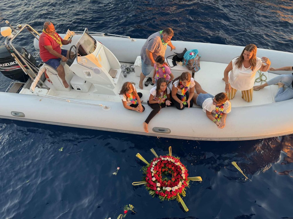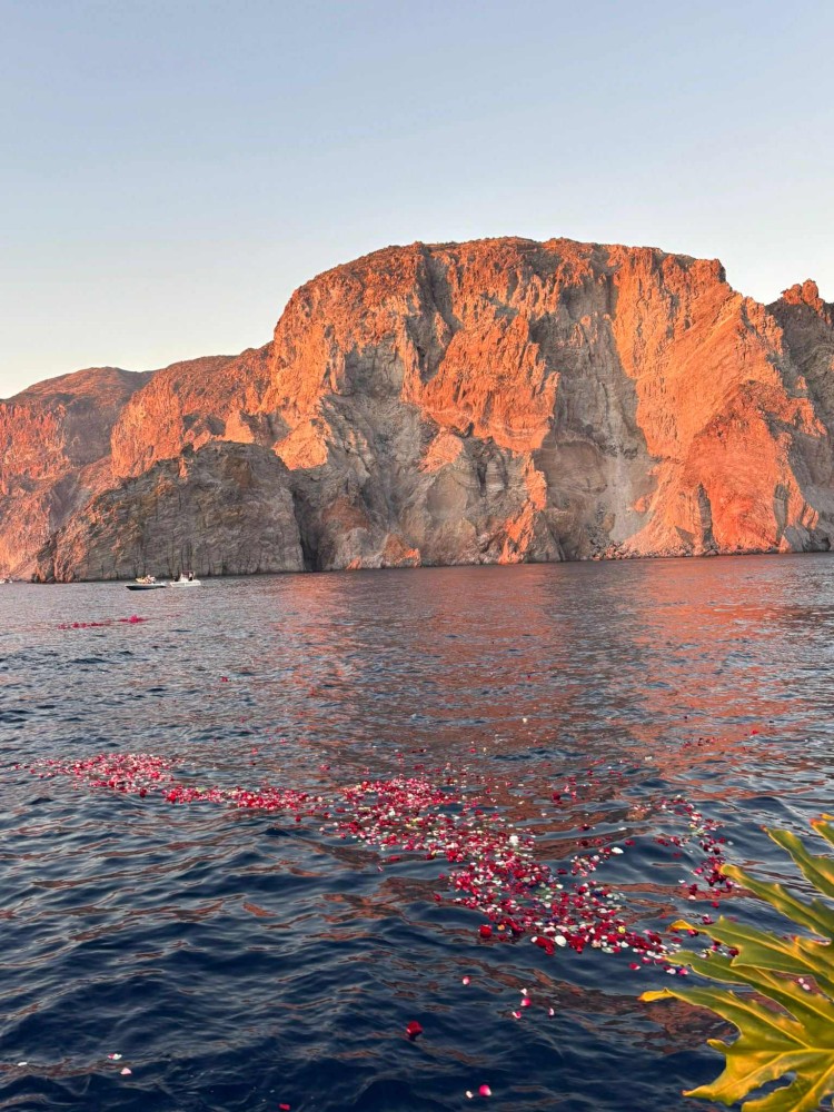 L’unione simbolica tra “i due giganti che il mare ha separato ma non ha potuto dividere” si è svolta al tramonto in un mare di fiori: il momento più commovente è stato quello in cui è stata lanciata in mare una corona di fiori a ricordo di Gery Palamara, con l’accompagnamento musicale del cantastorie Nicola Merlo, magia pura.
