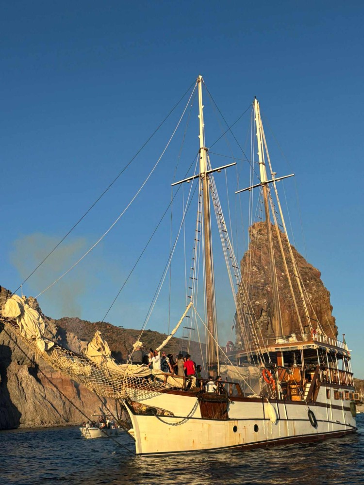 Protagonista dell’evento è stato lo storico veliero Sigismondo, guidato dal Capitano Felice, che ha guidato la processione di barche mentre l’elicottero dell’Air Panarea di Lorenzo Vielmo riprendeva dall’alto la scena.