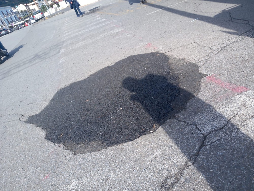 A dire il vero qualche buca è stata rattoppata vicino alla fermata dei bus di Urso vicino all'agenzia degli aliscafi.