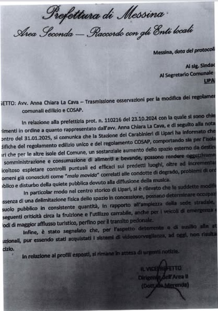 Un tentativo disperato, e vagamente teatrale, di demonizzare un provvedimento nato dal confronto tra consiglieri e associazioni di categoria. Tentativo culminato, a quanto pare, con la trasmissione – firmata dall’avvocato Annachiara La Cava – di una richiesta formale al Prefetto, affinché intervenisse e, sostanzialmente, mettesse la sordina a quanto deciso in piena legalità.
