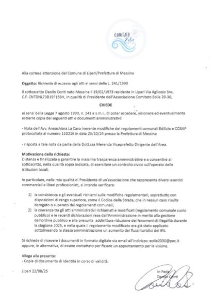 Infine, il documento del Viceprefetto – prende atto delle osservazioni del Comune. Ma per noi la chiarezza è importante, così come la legalità. Per questo abbiamo ritenuto di procedere con una formale richiesta di accesso agli atti, perché la democrazia non vive di sospetti, ma di trasparenza.