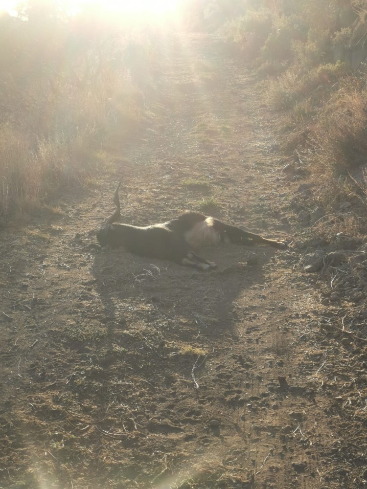 Oggi pomeriggio , nell isola di Vulcano nei pressi portella Gelso, un caprone di taglia gigante è stato trovato morto in mezzo alla strada poderale ostruito il passaggio.